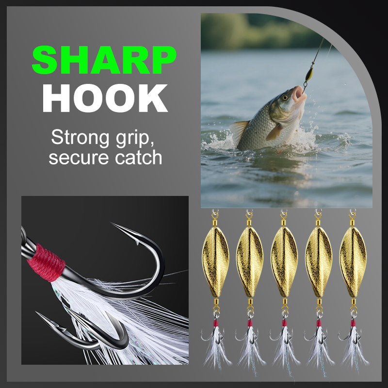 Lieferumfang: 5* 360° drehbarer Angelköder mit scharfem Federhaken