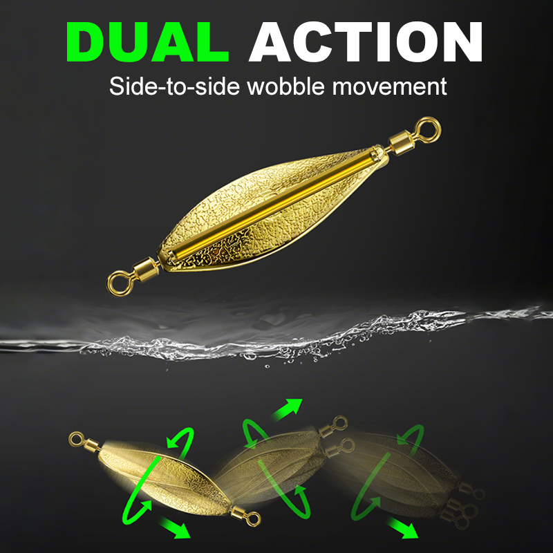 DUAL SWIMMING ACTION WOBBLE – Der doppelt gekrümmte Hohlkörper erzeugt ein seitliches Wackeln, das ein natürliches Schwimmverhalten erzeugt. Seine anmutige Schwingbewegung reduziert effektiv die Startdistanz und sorgt für eine gleichmäßige, realistische Bewegung, die Fische dazu verleitet, schnell und aggressiv anzubeißen.
