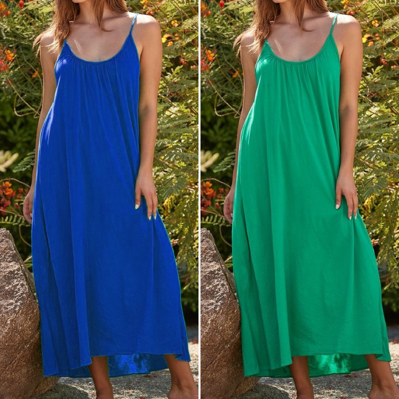 Langes, lockeres Spaghettiträgerkleid für Damen – schlicht und einfarbig