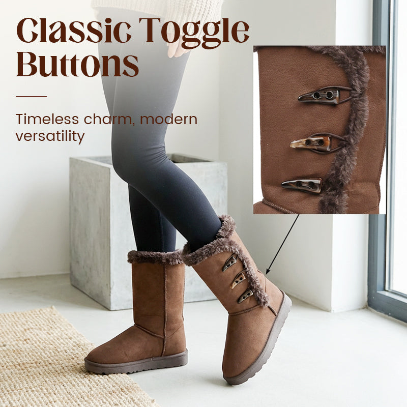 KLASSISCHER KNOPFSTIL â Werten Sie Ihre Wintergarderobe mit einem zeitlosen Design auf. Die dekorativen drei Knöpfe verleihen diesen Stiefeln einen Hauch von klassischem Charme und machen sie zu einer stilvollen Wahl, die perfekt zu Leggings, Jeans oder Winterkleidern passt.